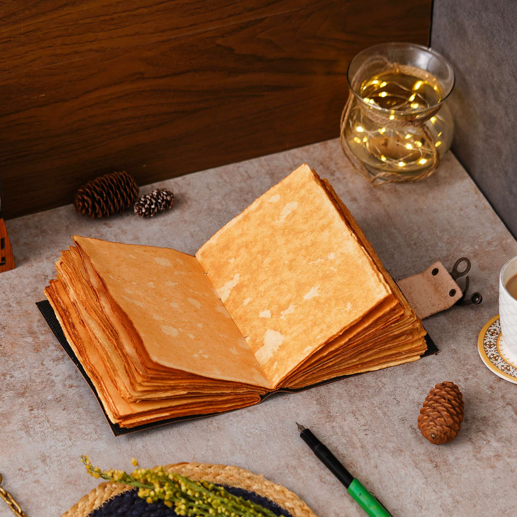 vintage handmade leather journal. Crafted with genuine leather, it radiates authenticity and charm, perfect for those who appreciate classic craftsmanship. The premium antique lock closure adds a touch of elegance and security, ensuring your thoughts and memories are safeguarded within its pages. Inside, you’ll discover 200 brown handmade pages, providing ample space for your musings, sketches, and stories to unfold. Whether it’s for journaling, sketching, or planning, this versatile journal is a timeless companion for your creative endeavors. Treat yourself or a loved one to this exquisite piece, a celebration of tradition and creativity